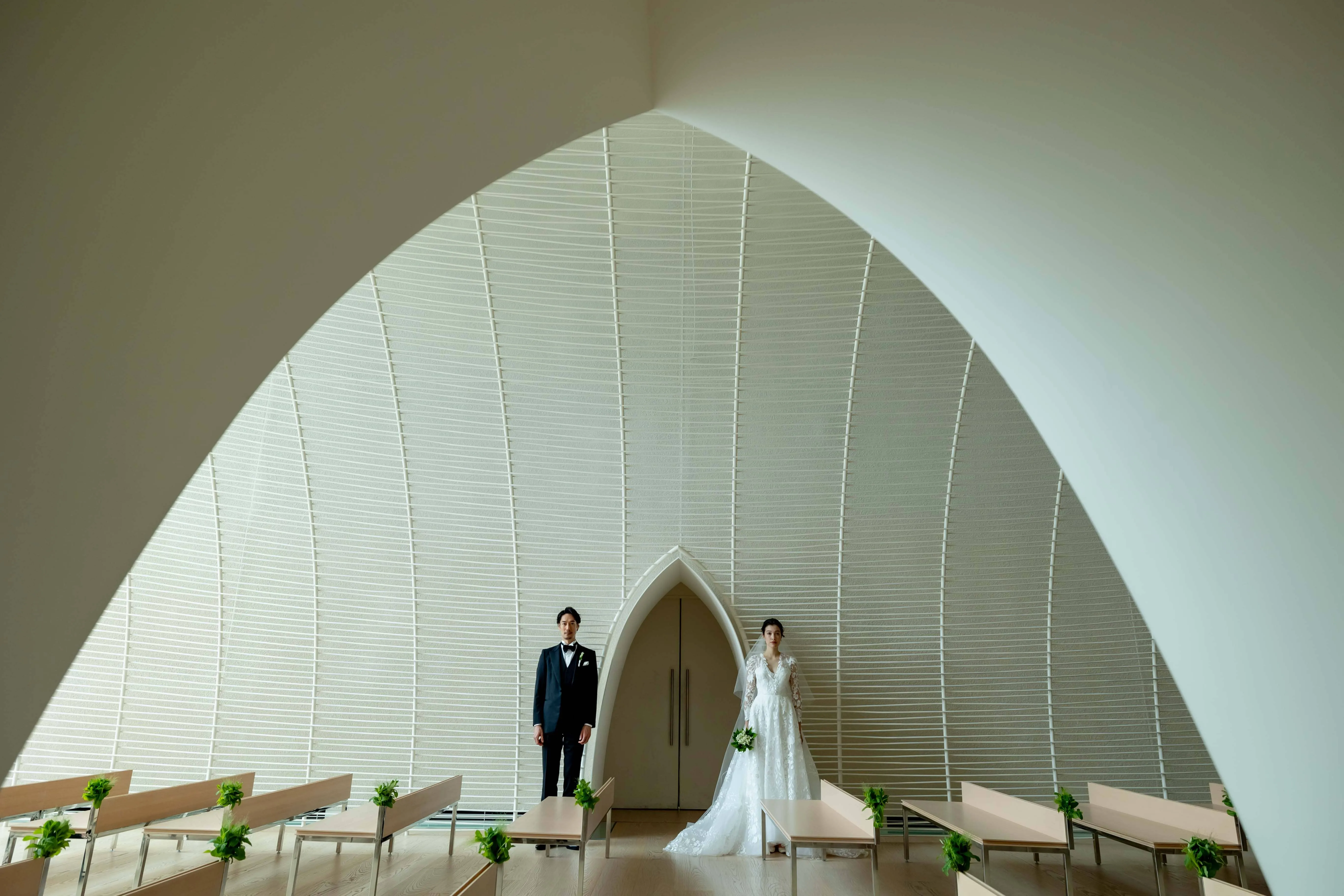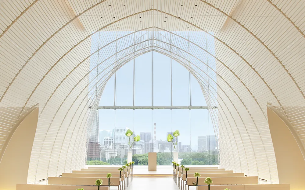 日本の匠が技を凝らした壮麗な空間で、厳かでありながらご家族の存在を身近に感じられる挙式。