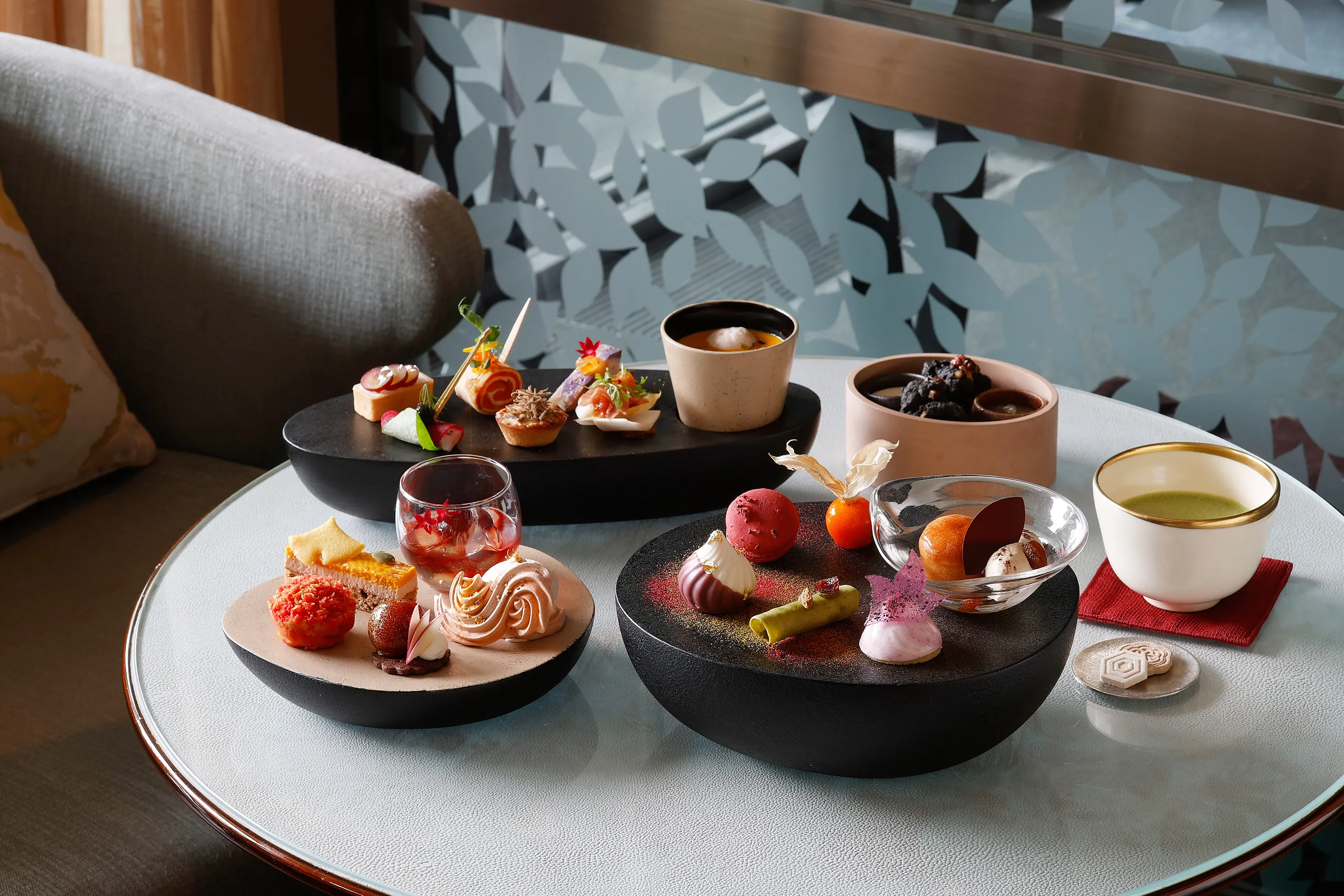 スイーツは洋梨のムースや栗のムラングシャンティイ。セイボリーは茸や南瓜を巧みに活かした品々が並びます。