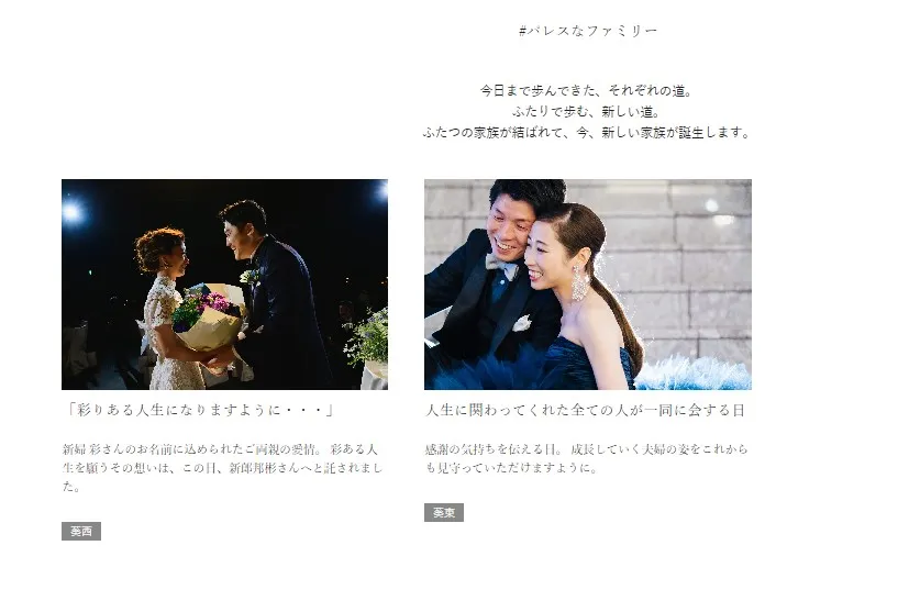 ふたつの家族が結ばれて、今、新しい家族が誕生します。