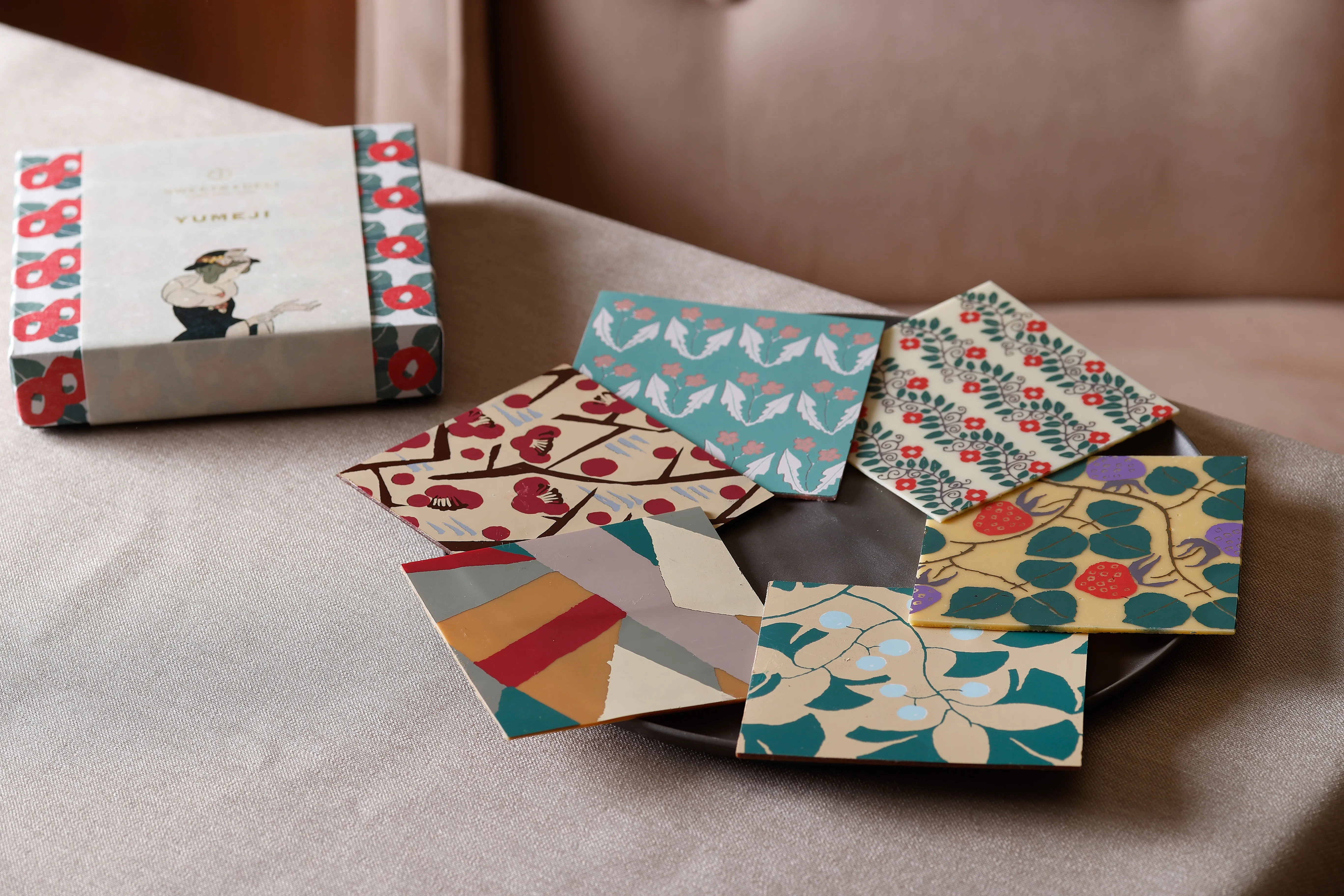 スパイスを効かせたスペキュロスやフランボワーズ、フロマージュなど全6種類のフレーバーが、クリスマス限定デザインの缶に美しく並びます。