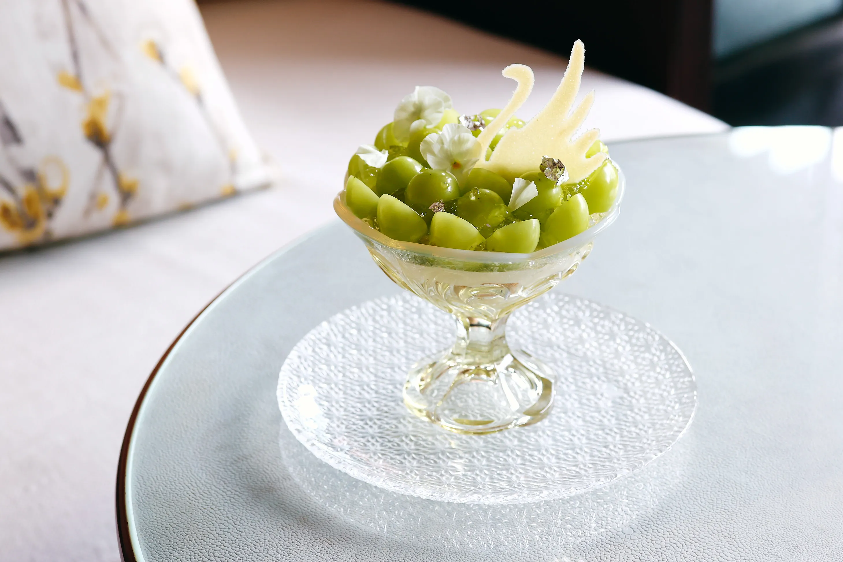 旬の瑞々しい大粒のシャインマスカットを贅沢に使った季節のパフェ。