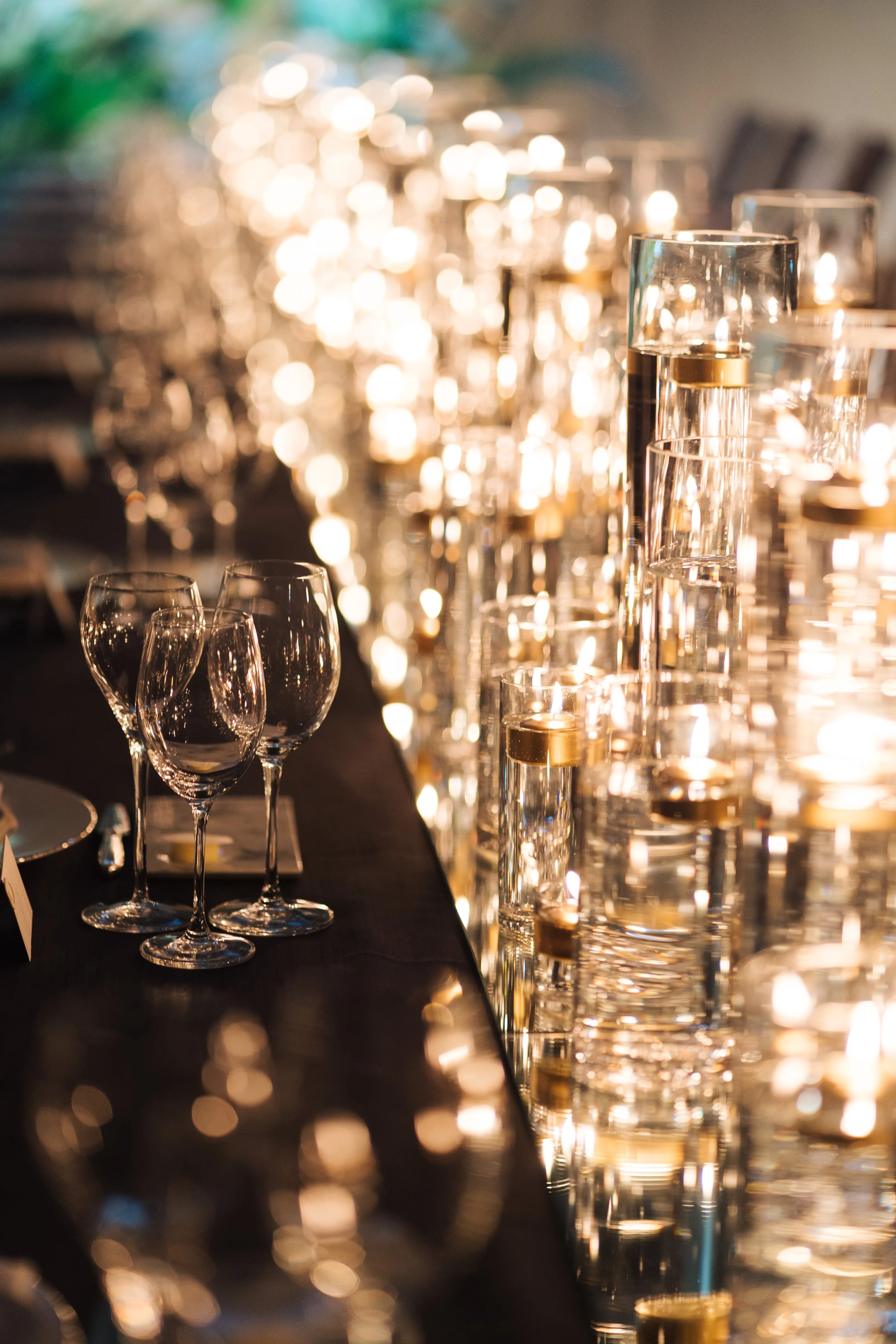会場中央に設けたロングテーブルにはたくさんのキャンドルを並べました。