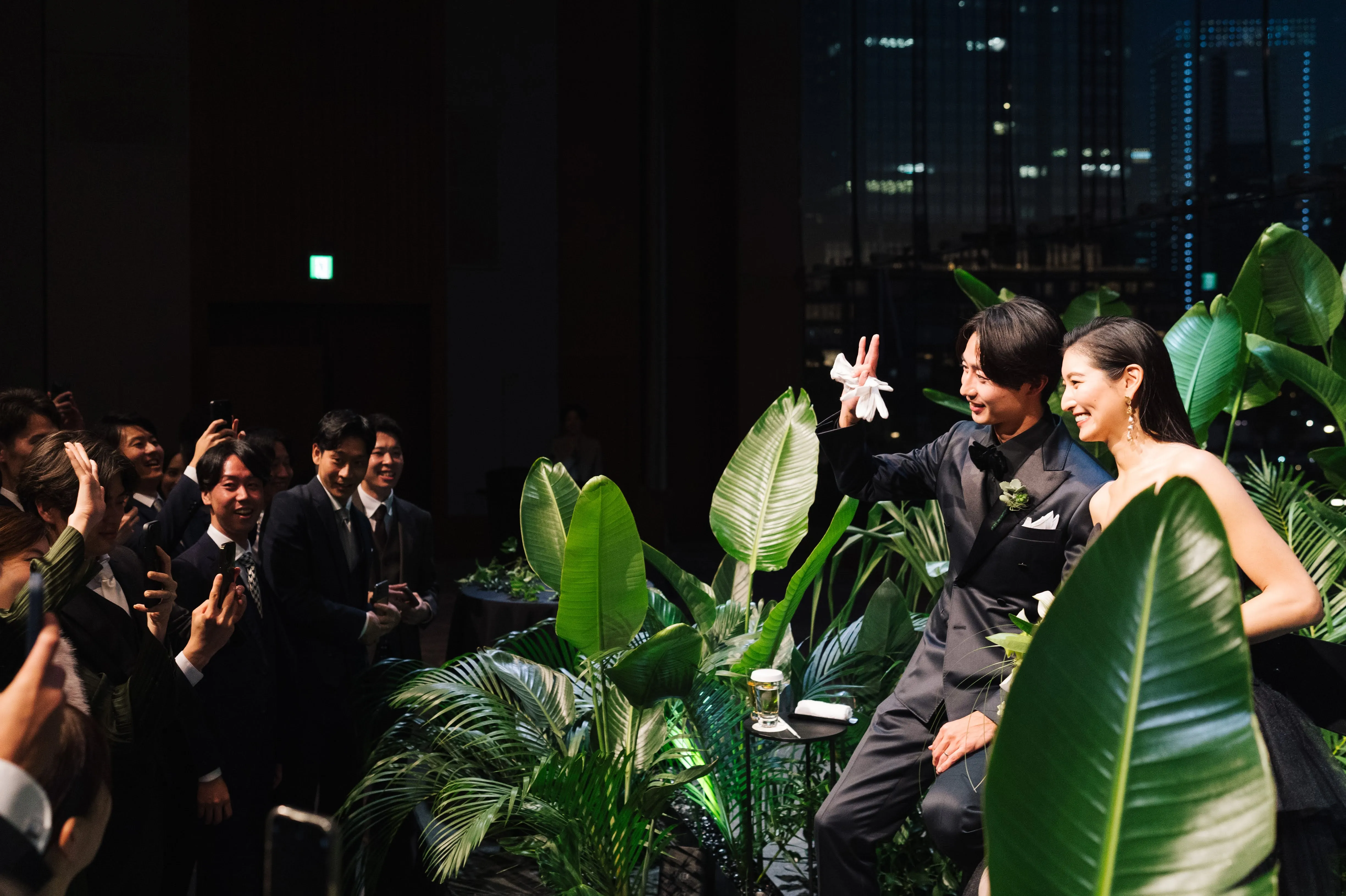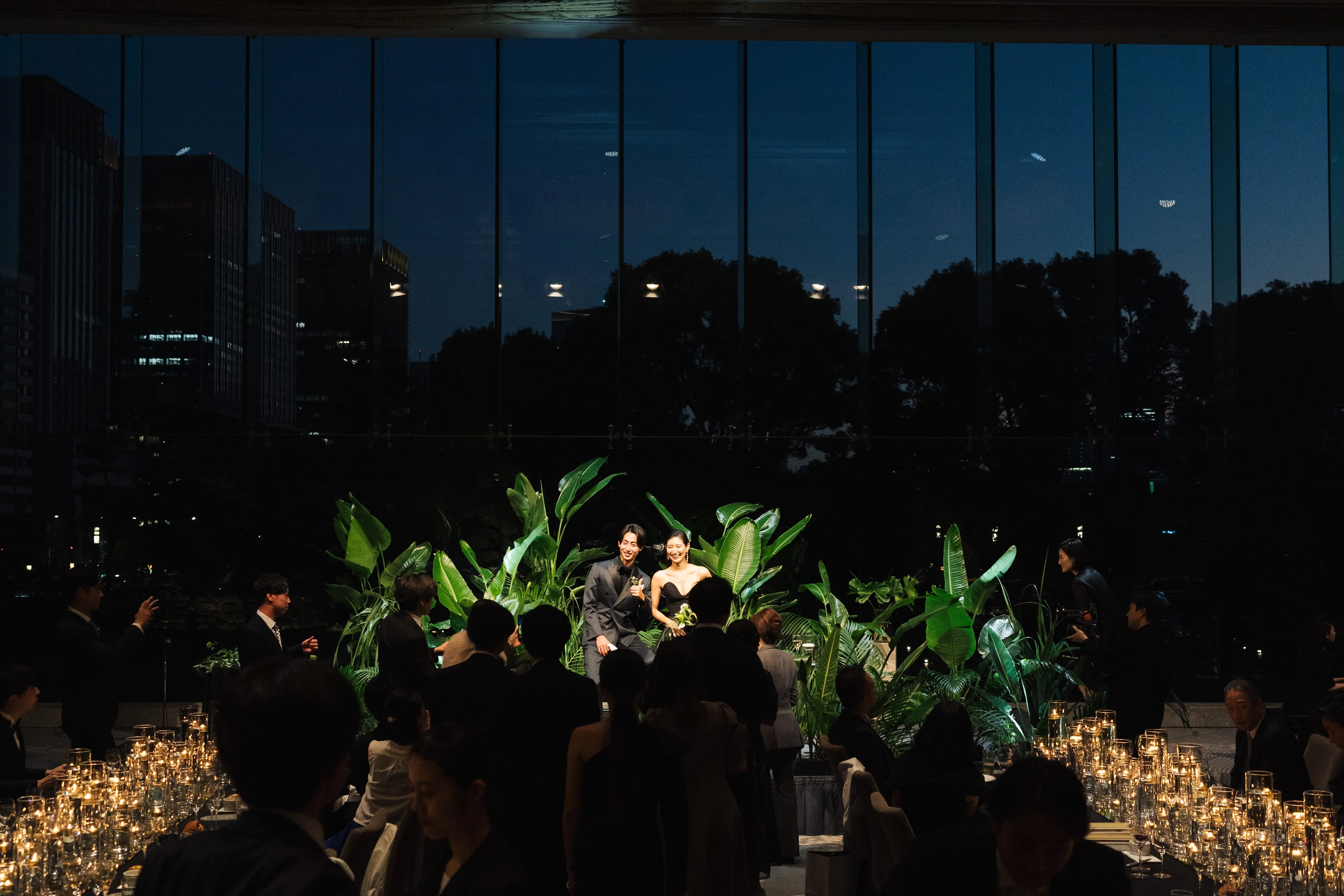 ゲストが過ごす空間やひとつひとつのデザインを大切にしたおふたりのパーティーは、ペーパーアイテムを海外製のものを採用されたり細部までこだわりを感じられる時間となりました。これからもおふたりがおふたりらしく、芯がありつつも柔軟性を大切に輝き続けるご夫婦となりますよう願っております。